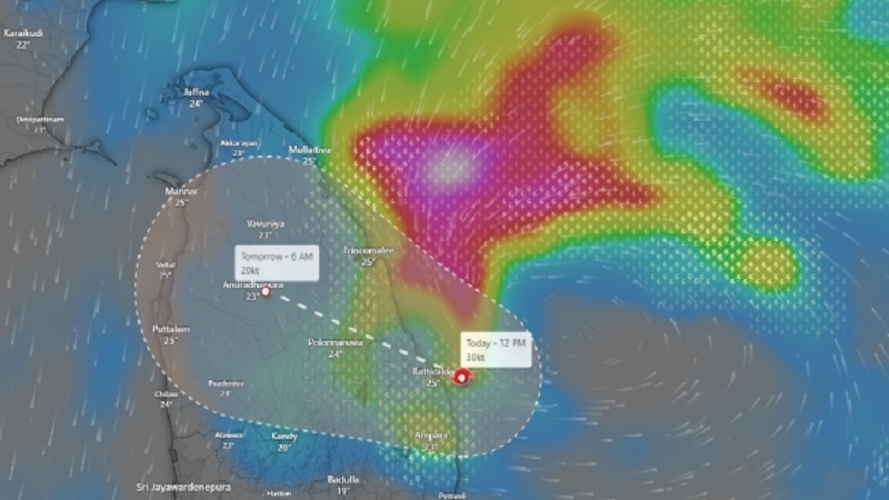 கடந்த 6 மணி நேரமாக மணிக்கு 10 கி.மீ. வேகத்தில் நகர்ந்து வரும் ஆழ்ந்த காற்றழுத்த தாழ்வு மண்டலம், இன்று மாலை அல்லது இரவு நேரத்தில் பொத்துவில் – திரிகோணமலை இடையே கரையைக் கடக்கும் எனத் தெரிவிக்கப்பட்டுள்ளது.