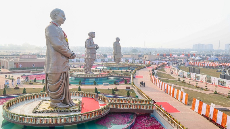 அங்கு வாஜ்பாய், பண்டிட் தீனதயாள் உபாத்யாயா, சியாமா பிரசாத் முகர்ஜி ஆகியோரின் தலா 65 அடி உயர வெண்கல சிலைகள் நிறுவப்பட்டுள்ளன.
