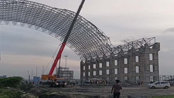 திருவள்ளுர் மாவட்டம் எண்ணூரில் அனல் மின்நிலையம் உள்ளது. இங்குள்ள 4-வது அலகில் விரிவாக்கப்பணி நடந்து வருகிறது. நுழைவு வாயிலின் முகப்பு பகுதியில் கட்டுமான பணிக்காக, இரும்பு கம்பிகளை கொண்டு சாரம் அமைக்கப்பட்டு இருந்தது. இந்த பணியில் 30-க்கும் மேற்பட்ட தொழிலாளர்கள் ஈடுபட்டிந்தனர். அவர்கள் அனைவரும் வடமாநிலத்தை சேர்ந்தவர்கள். நேற்றும் அவர்கள் வழக்கம்போல் பணியில் ஈடுபட்டிருந்தனர்.