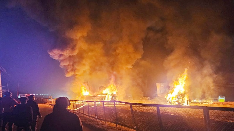 கர்நாடகம் மாநிலம் சித்ரதுர்கா மாவட்டத்தில் தனியார் சொகுசு பஸ் மீது கன்டெய்னர் லாரி மோதியதில் பஸ் தீப்பிடித்து எரிந்ததில் பயணிகள் 20 பேர் தீயில் கருகி உயிரிழந்தனர், பலர் படுகாயமடைந்தனர்.