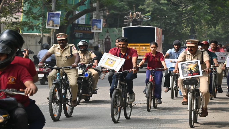 டி.ஜி. வைஷ்ணவா கல்லூரி, போதைப் பொருள் ஒழிப்பு மற்றும் போக்குவரத்து விழிப்புணர்வு சைக்கிள் பேரணியை வெற்றிகரமாக நடத்தியது. இந்த நிகழ்ச்சி, கல்லூரியின் போதைப் பொருள் ஒழிப்புமன்றம் மற்றும் மக்கள் தொடர்புத்துறை இணைந்து, பெருநகரச் சென்னைக் காவல்துறையின் ஒத்துழைப்புடன் ஏற்பாடு செய்யப்பட்டது. போதைப் பொருட்களின் தீமைகள் மற்றும் போக்குவரத்து ஒழுக்கத்தின் அவசியம் குறித்து பொதுமக்களிடையே விழிப்புணர்வை ஏற்படுத்துவதே இந்நிகழ்ச்சியின் முக்கிய நோக்கமாகும்.
