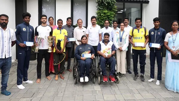 கேலோ இந்தியா பாரா விளையாட்டு போட்டியில் தங்கப்பதக்கம் வென்ற ஜி.அவிநாஷ், 2025 தேசிய பாரா டேபிள் டென்னிஸ் போட்டியில் வெள்ளி பதக்கம் வென்ற டி.சரவண குமார் ஆகியோருக்கு தலா 1,50,000 ரூபாய்க்கான காசோலைகளையும்,
