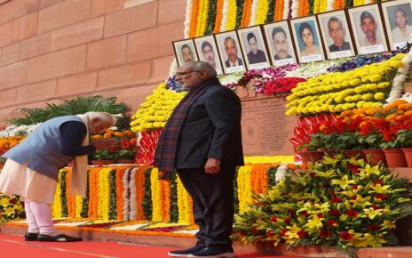 2001 பார்லிமெண்ட் தாக்குதலில் உயிரிழந்த பாதுகாப்பு படை வீரர்கள் படத்திற்கு பிரதமர், துணை ஜனாதிபதி மலர் தூவி மரியாதை
