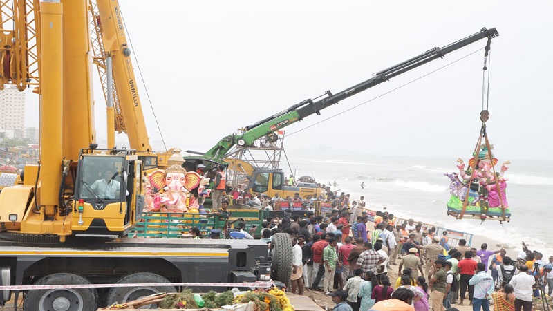 சென்னையில் விநாயகர் சிலைகள் கரைக்கும் பணி இன்று நடந்தது. பட்டினப்பாக்கம், நீலங்கரை கடற்கரையில் ராட்சத கிரேன் மூலம் விநாயகர் சிலைகள் கரைக்கப்பட்டன.