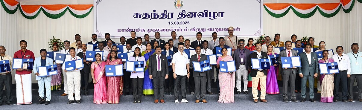 79வது சுதந்திர தினத்தையொட்டி சென்னை கோட்டையில் தேசிய கொடியை ஏற்றி வைத்து ஸ்டாலின் இந்த விருதுகளை வழங்கினார்.