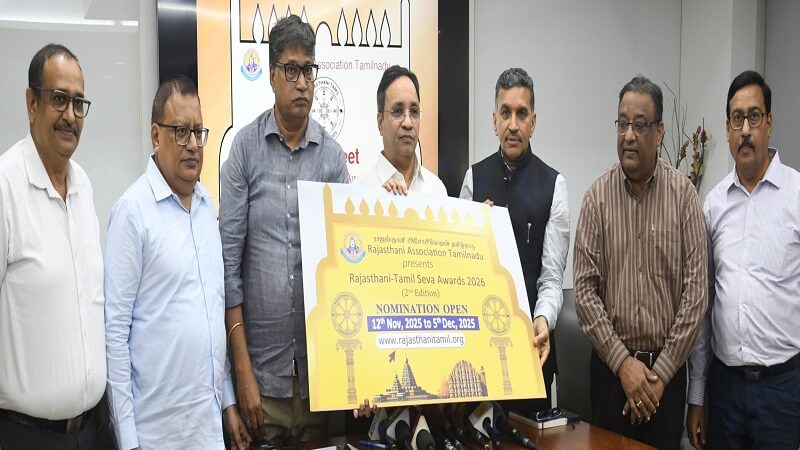 ராஜஸ்தானி அசோசியேஷன் தமிழ்நாடு, அதன் மதிப்புமிக்க ‘ராஜஸ்தானி–தமிழ் சேவா விருதுகள் 2026’ இன் 2வது பதிப்பை பெருமையுடன் அறிவித்துள்ளது. தமிழ்நாடு மற்றும் புதுச்சேரி மக்களுக்கு அவர்களின் சிறந்த பங்களிப்புகளுக்காகத் தனித்துவமான தனிநபர்கள் மற்றும் நிறுவனங்களை கௌரவிக்கும் ஒரு முயற்சியே இந்த விருதுகள். சென்னை, நவம்பர் 12, 2025 அன்று இந்த அறிவிப்பு வெளியிடப்பட்டது.