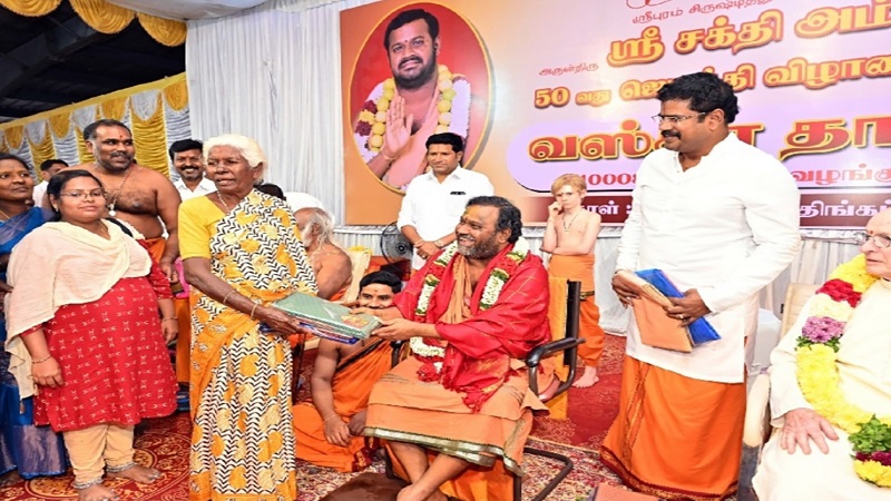 வேலூர் நாயாயணி பீடம் மற்றும் தங்க கோயிலை நிறுவிய ஸ்ரீ சக்தி அம்மாவின் 50வது ஜெயந்தி விழாவை முன்னிட்டு 10,008 மகளிருக்கு வஸ்தர தானம் வழங்கும் நிகழ்ச்சி நடைபெற்றது. இந்நிகழ்ச்சியில் சக்தி அம்மா பங்கேற்று அனைத்து மகளிரையும் ஆசீர்வதித்து புடவைகளையும் வழங்கினார். கலவை சச்சுதாநந்த சுவாமிகள் சிறப்பு விருந்தினராக கலந்து கொண்டு மலர் மாலை அணிவித்து அவரைக் கவுரவித்தார்.
